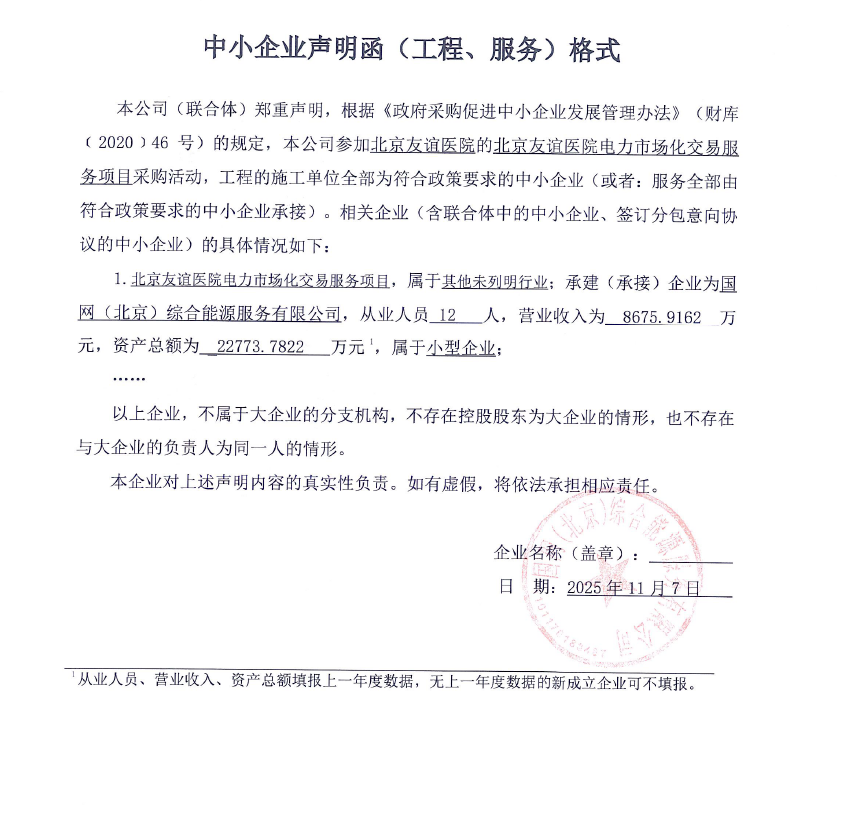 | 国网(北京)综合能源服务有限公司 | * | ***.*万元 | ***.*万元 | 医院****年*月*日至 ****年**月**日预计总用电量*.***亿千瓦时,其中预计使用绿电*.***亿千瓦时。要求绿电价格在*绿批的基础上浮动价格不高于**元/兆瓦时。服务商应根据交易规则,负责医院****年度至****年度电力市场化交易服务,协助医院完成电力市场化交易工作。同时提供供电保障服务。 |