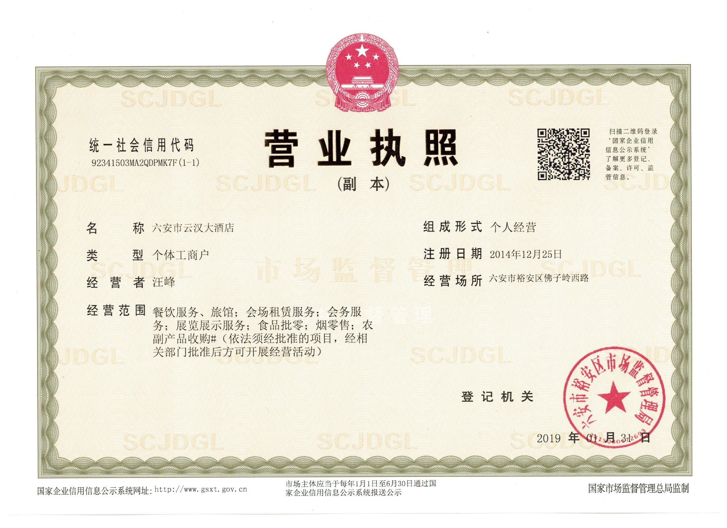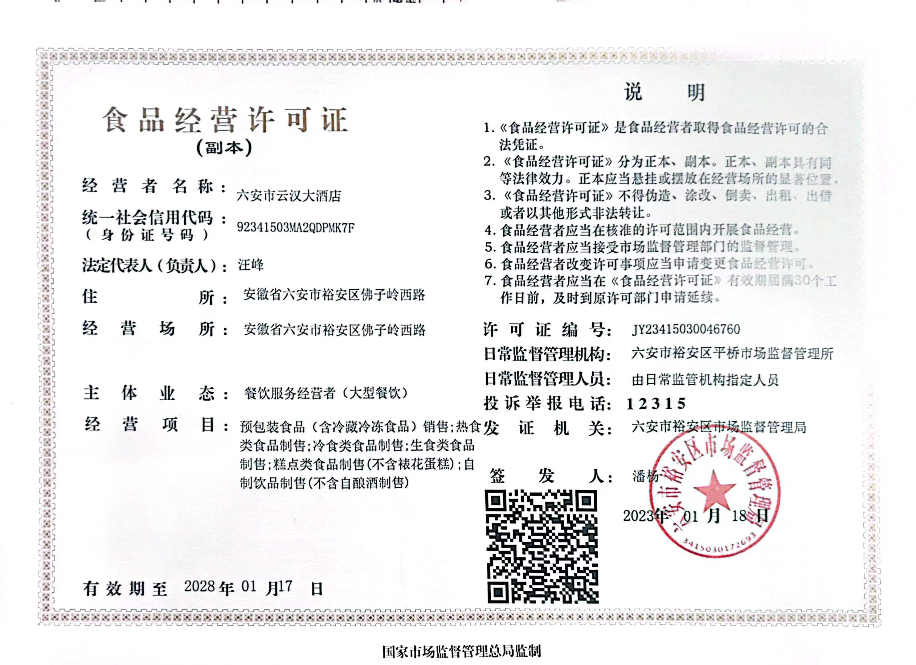 六安市云汉大酒店入围2025-2026年安徽省党政机关会议场所保障服务开放式框架协议采购方案的结果公告