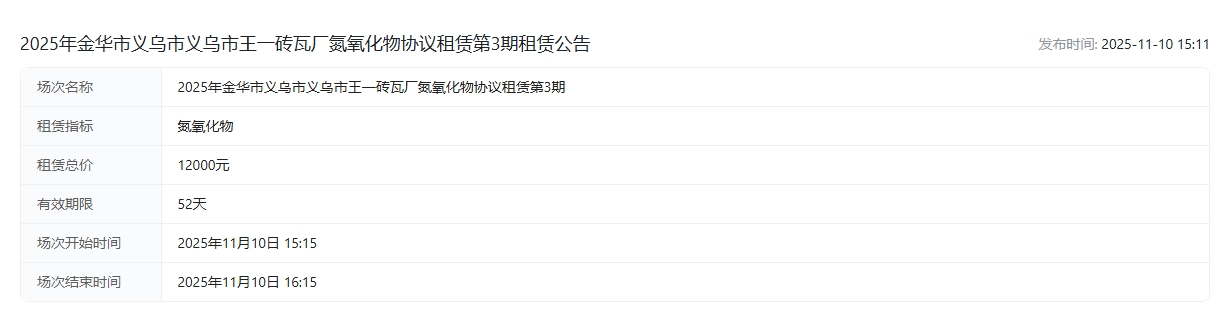 2025年金华市义乌市义乌市王一砖瓦厂氮氧化物协议租赁第3期租赁公告