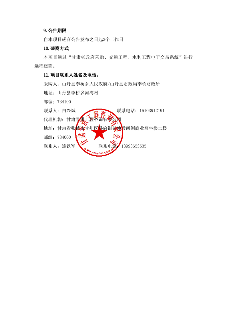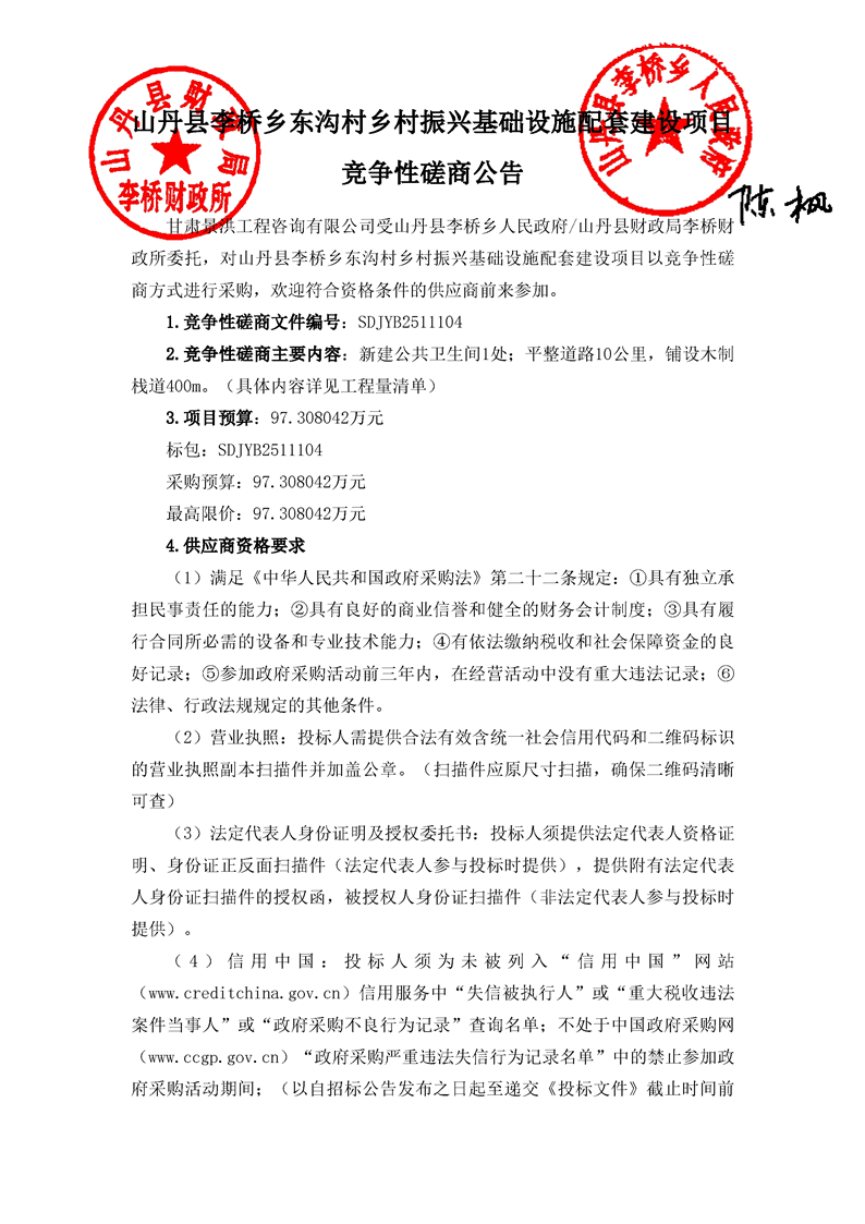 山丹县李桥乡东沟村乡村振兴基础设施配套建设项目竞争性磋商公告