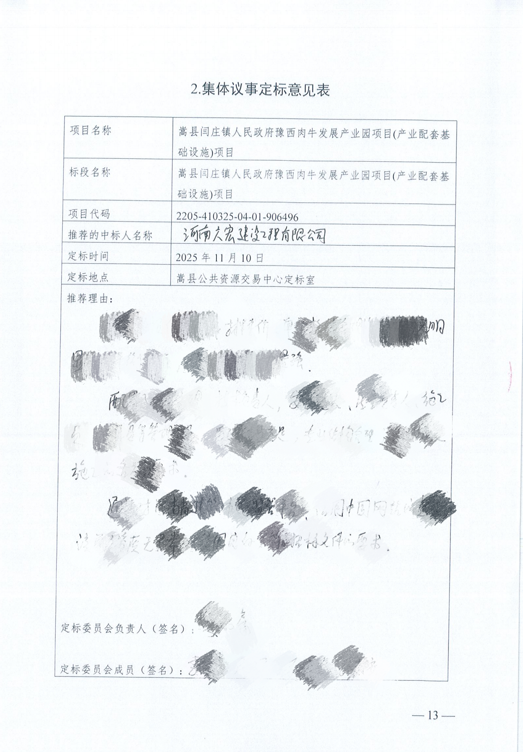 嵩县闫庄镇人民政府豫西肉牛发展产业园项目(产业配套基础设施)项目*中标公告