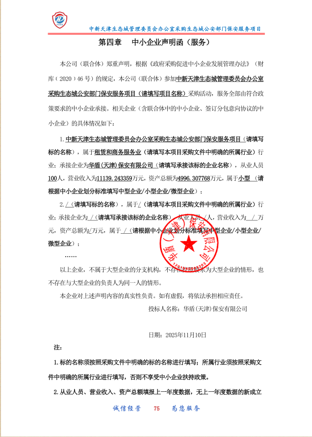 中新天津生态城管理委员会办公室采购生态城公安部门保安服务项目(项目编...