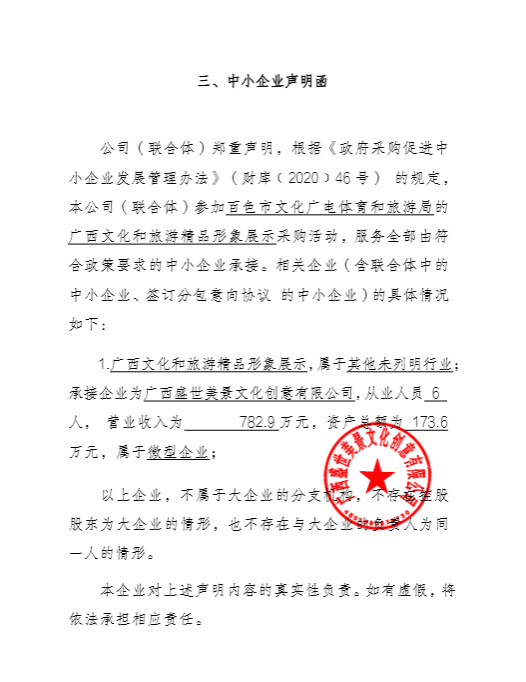 | * | 广西文化和旅游精品形象展示 | 广西文化和旅游精品形象展示 | 广西文化和旅游精品形象展示*项,详见招标文件 | 按招标文件《采购需求》执行 | 按招标文件《采购需求》执行 | 按招标文件《采购需求》执行 |