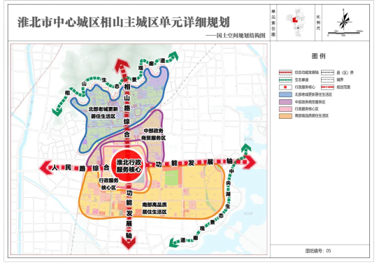 中心城区相山主城区单元为城市更新单元,单元主导功能为:公服、商业和居住。建设成为皖北地区存量更新标杆、小尺度高品质生活典范,实现“老城复兴”与“人民满意”的双重目标的主城区。