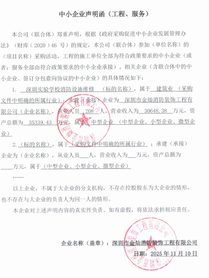 *.供应商名称:深圳市金灿消防装饰工程有限公司