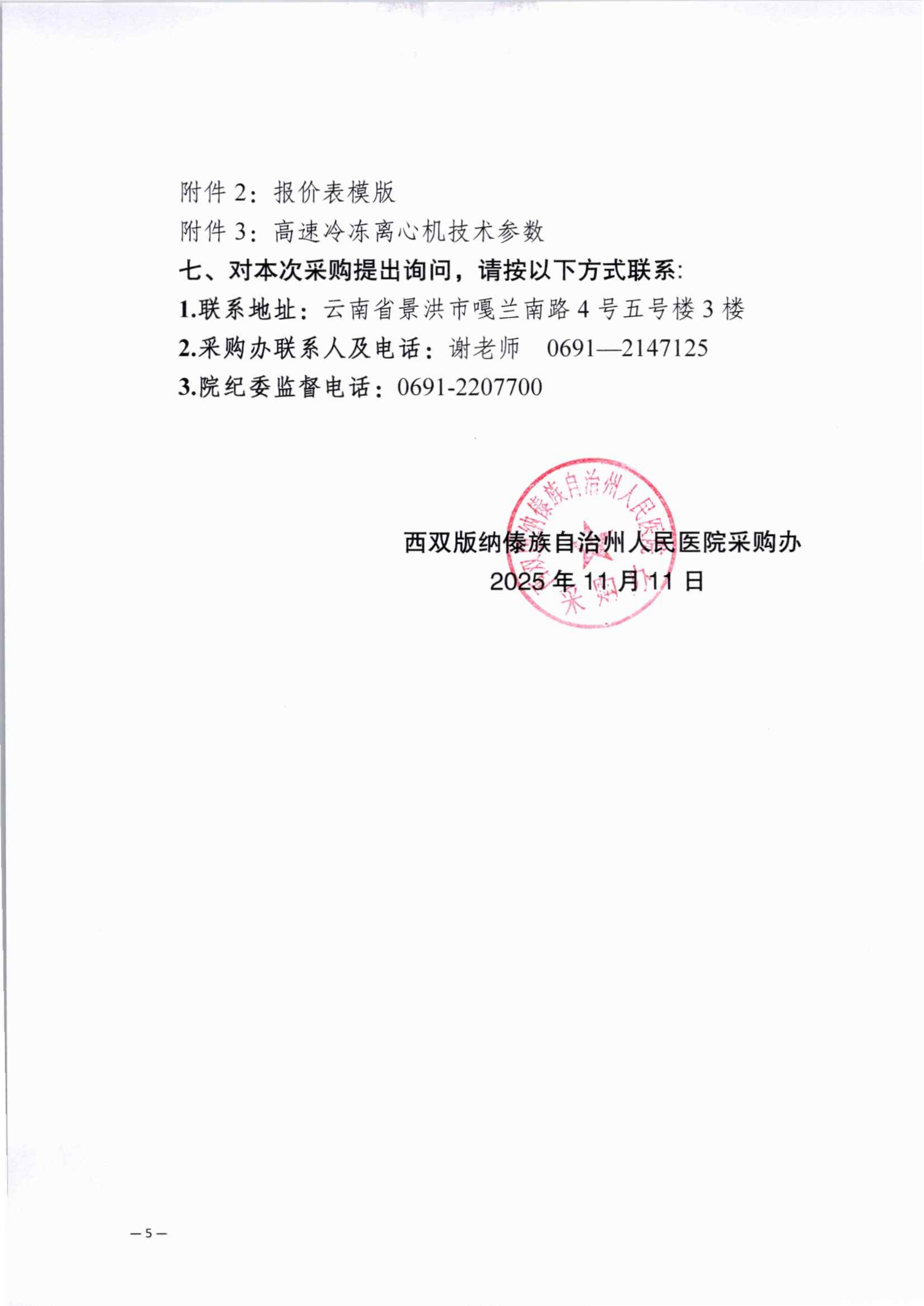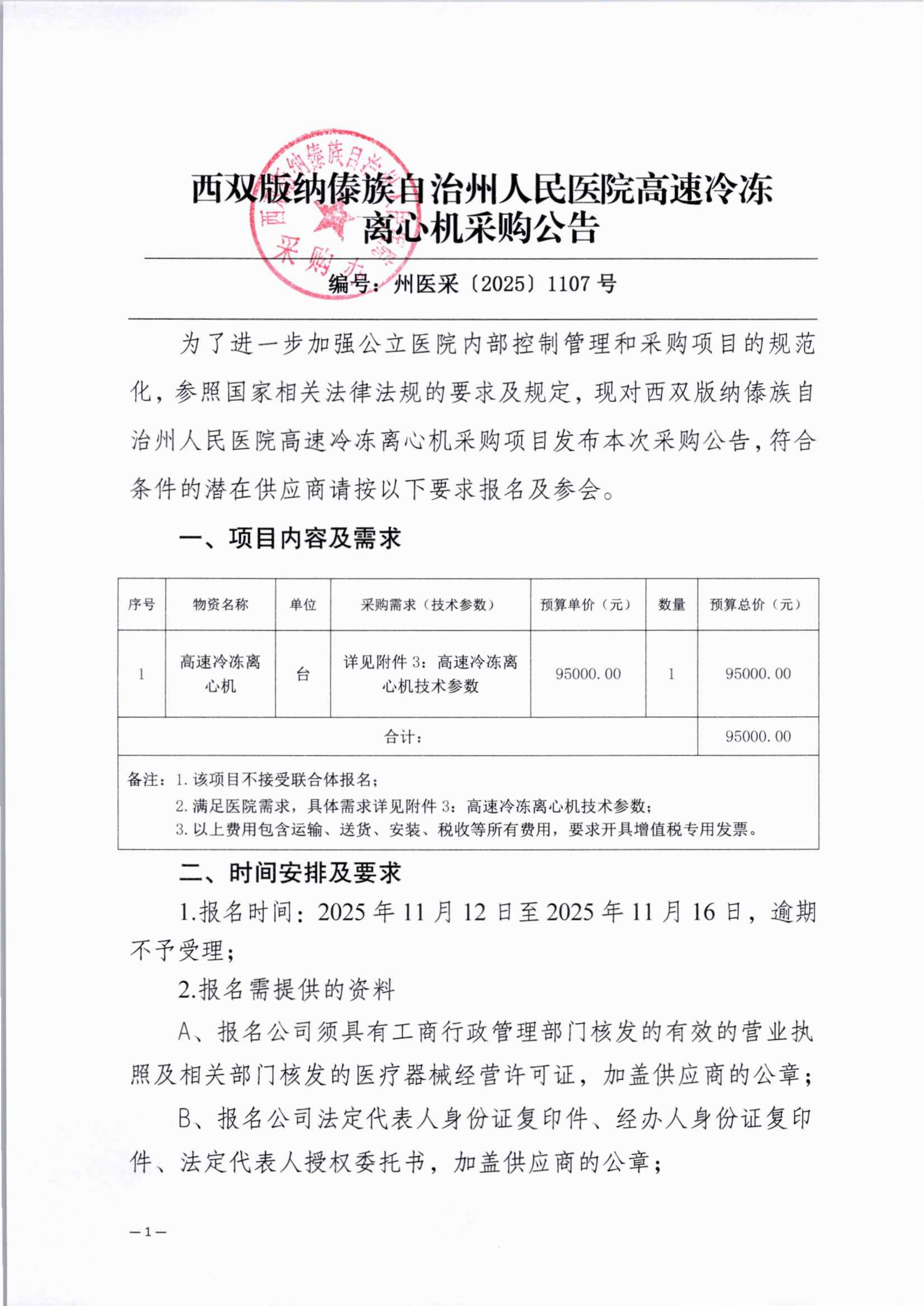 西双版纳傣族自治州人民医院高速冷冻离心机采购公告