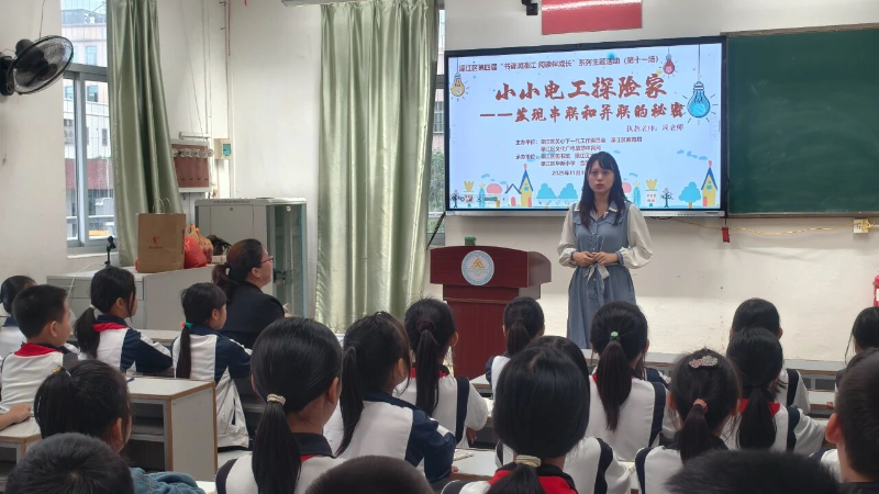 为丰富青少年课余文化生活,激发科学探索精神,推动“书香润濠江 阅读伴成长”系列活动走深走实,**月**日,第四届“书香润濠江 阅读伴成长”系列主题活动第十一场“小小电工探险家——发现串联和并联的秘密”在濠江区华新小学顺利开展。此次活动由濠江区关工委、区教育局、区文化广电旅游体育局主办,区图书馆、区文化馆、合胜书店承办,学生们化身“小小电工”,在趣味实验与互动探索中,揭开了电学世界的神秘面纱。