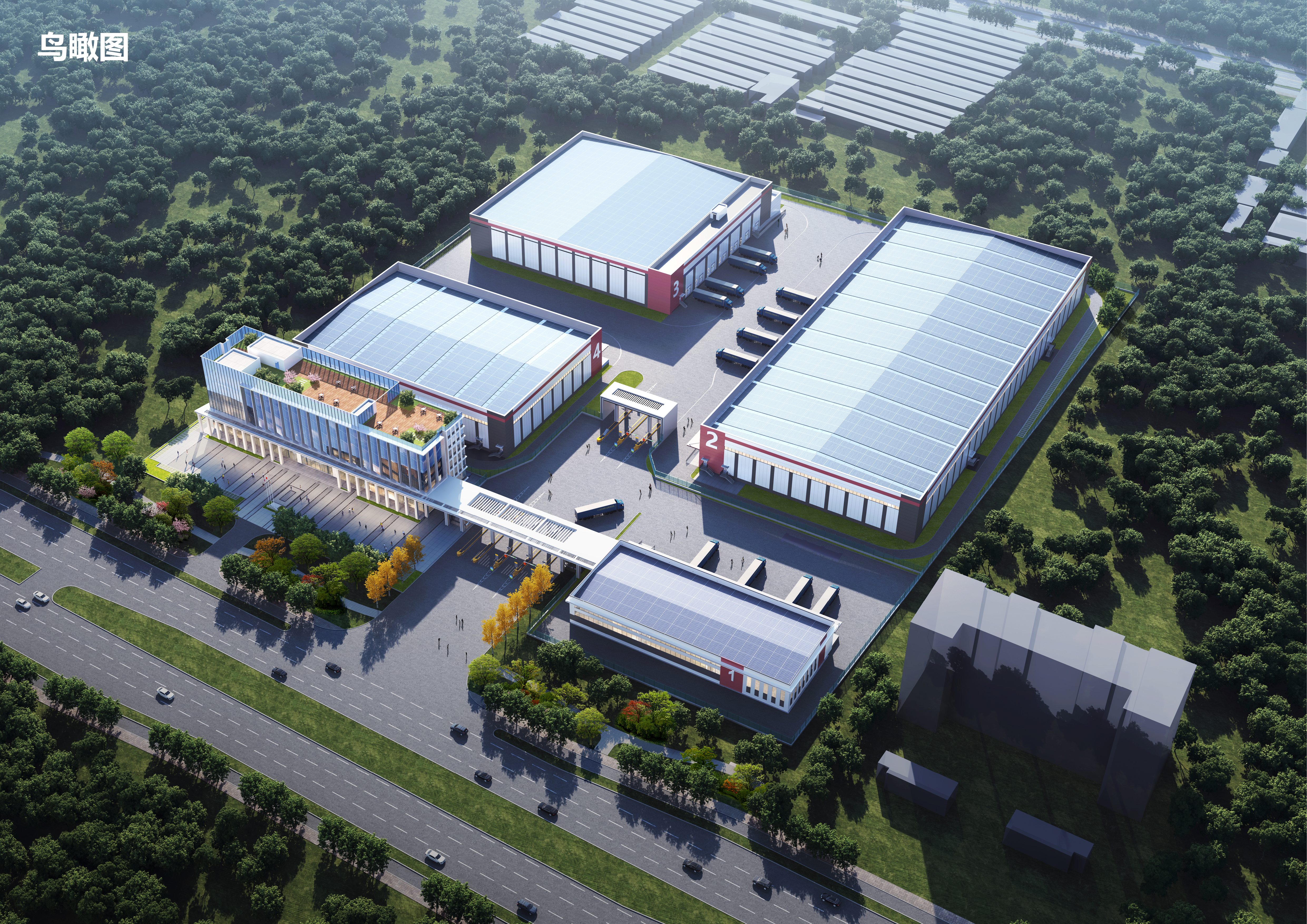 项目地块内规划规划新建*栋*层综合服务楼、*栋*层查验中心、*栋*层仓库(其中*栋为冷库)、*栋*层主卡口、*栋*层内卡口。规划总建筑面积约*.*万㎡,其中:地上计容建筑面积约*.**万㎡,地上建筑面积约*.**万㎡,地下建筑面积约*.**万㎡。容积率约*.**,建筑系数约**.**%,绿地率约**.**%。