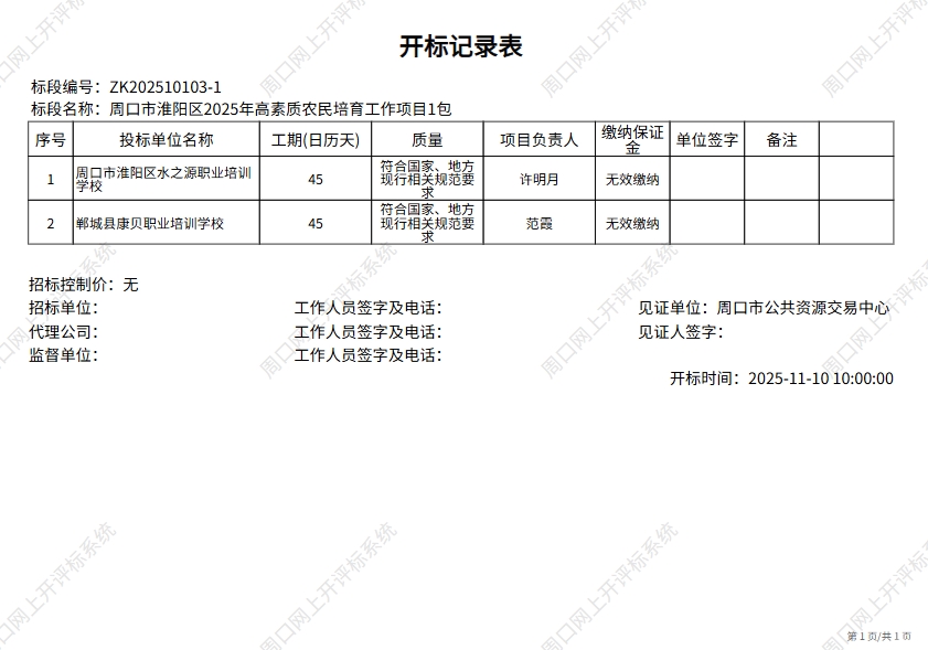 | *、采购项目名称:周口市淮阳区****年高素质农民培育工作 | ||||||