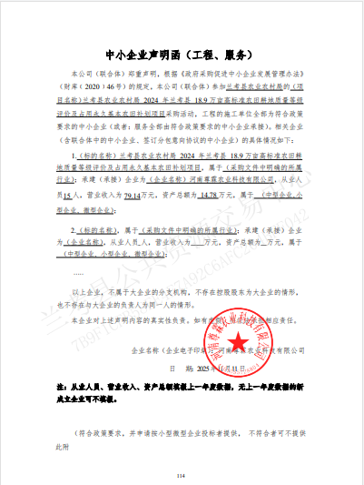 | *、采购项目名称:兰考县农业农村局****年兰考县**.*万亩高标准农田耕地质量等级评价及占用永久基本农田补划项目 | |||||||||||||||||||||||||||||||