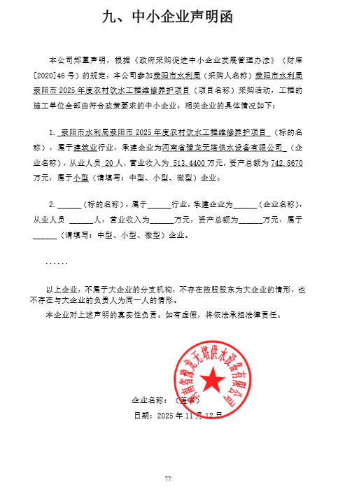荥阳市水利局荥阳市2025年度农村饮水工程维修养护项目-成交公告
