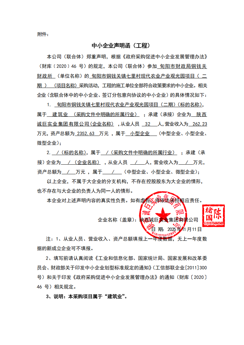 旬阳市铜钱关镇七里村现代农业产业观光园项目(二期)中标(成交)结果公告