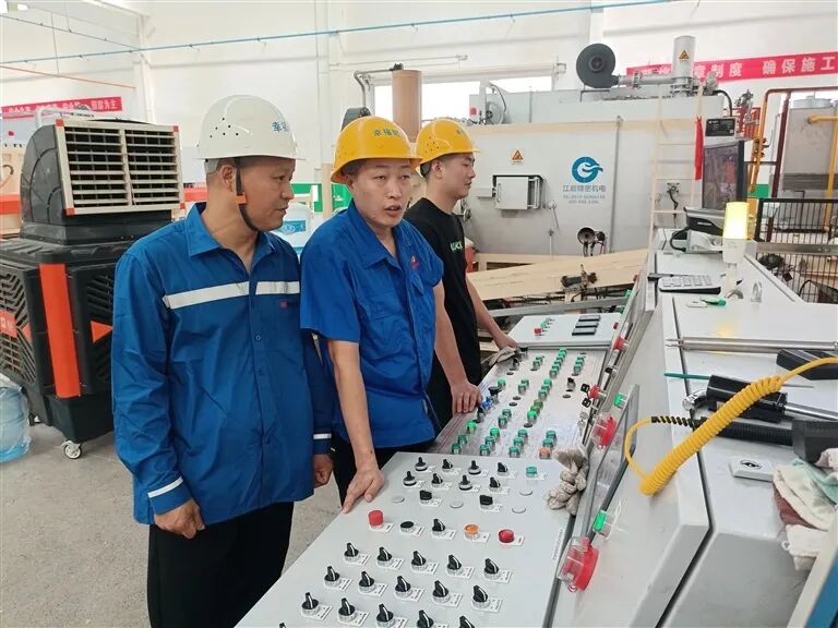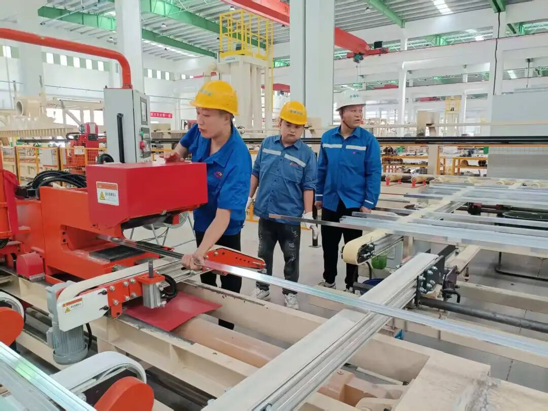 在湖北幸福铝业新材料科技有限公司年产**万吨新型工业用铝生产线扩建项目挤压车间内,技术人员正在调试设备。