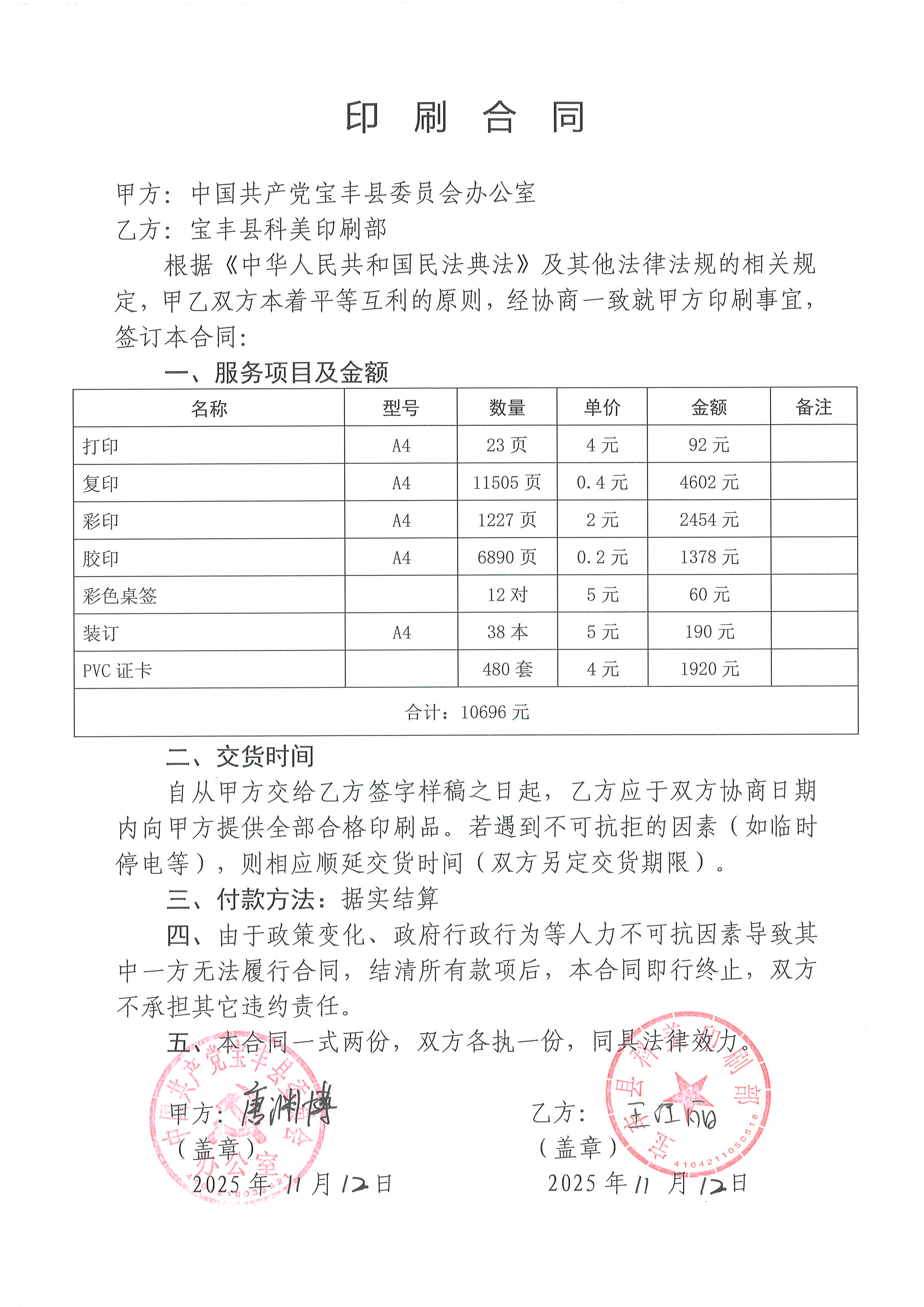 | *.供应商(乙方):宝丰县科美印刷部 | ||||||||||||