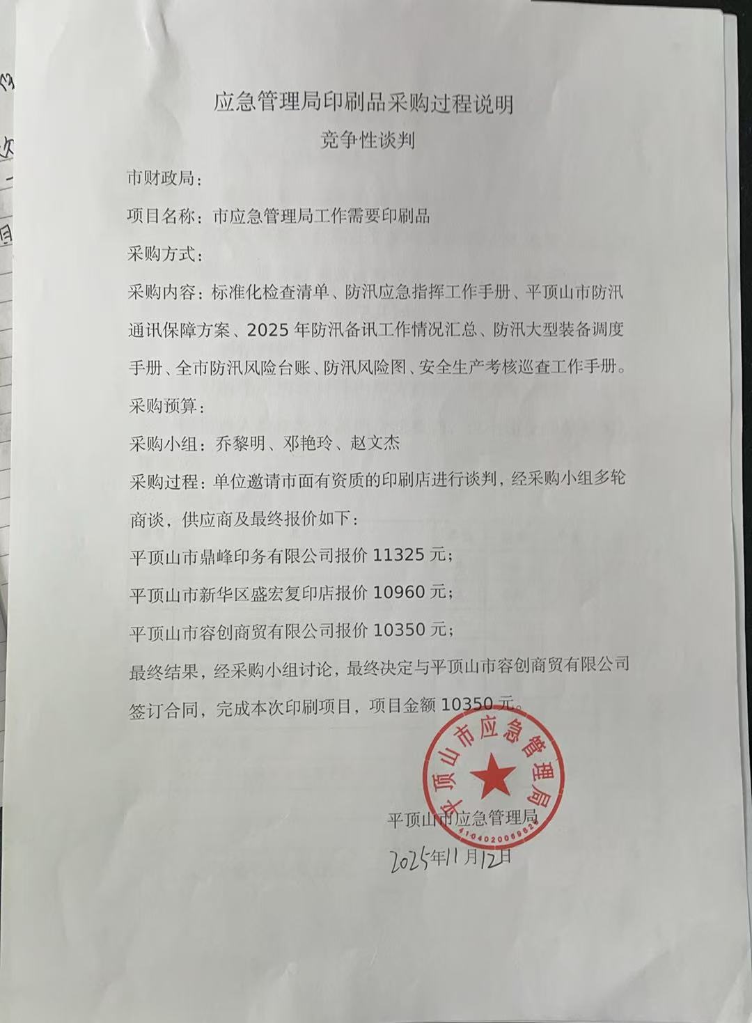 | 二、合同名称:平顶山市应急管理局采购印刷品项目 | ||||||||||||