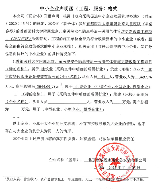 二、项目名称:首都医科大学附属北京儿童医院安全隐患整治—医用气体管道更新改造工程项目