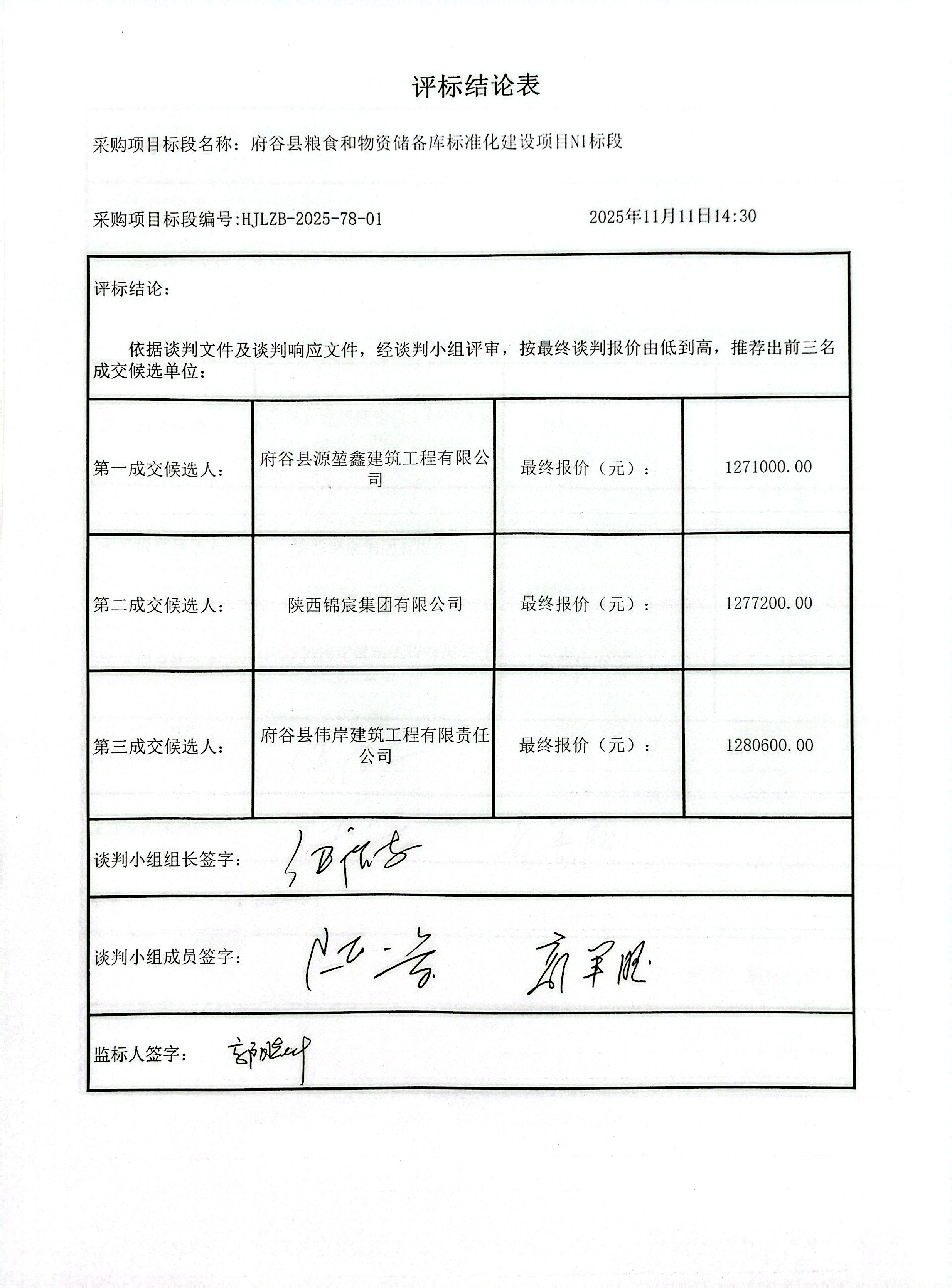 府谷县粮食和物资储备库标准化建设项目中标(成交)结果公告