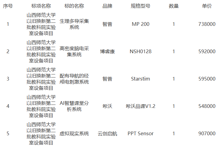 山西师范大学以旧换新第二批教科院实验室设备项目结果公告