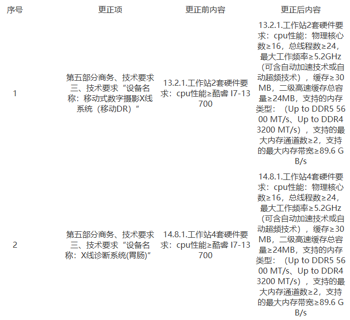山西白求恩医院超长期特别国债设备更新项目购置移动式数字摄影X线系统(移动DR)和X线诊断系统(胃肠)项目更正公告