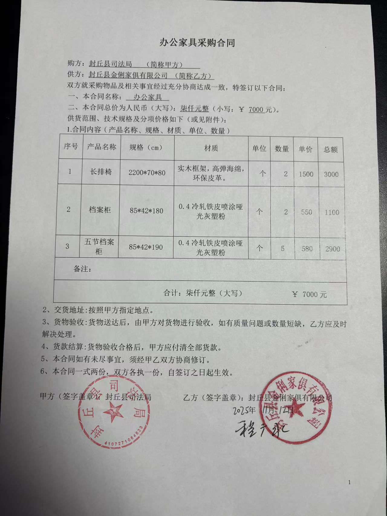 | *.供应商(乙方):封丘县金俐家俱有限公司 | ||||||||||||||||||||||||