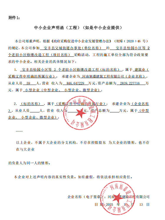 宝丰县父城街道办事处宝丰县怡园小区等*个老旧小区修缮改造工程项目*成交公告