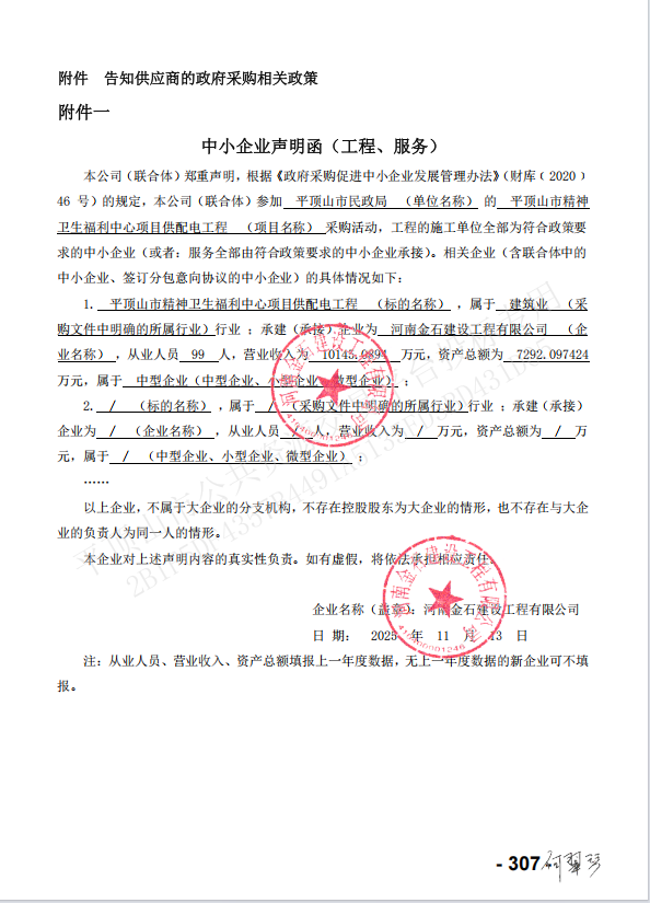 | *、根据评标结果、中标结果公示,按照国家有关规定,确定 河南金石建设工程有限公司 为成交供应商,其他供应商未中标。 *、供应商或其他利害关系人对本次成交结果如有异议,请按中华人民共和国财政部令第**号《政府采购质疑和投诉办法》的相关规定,在规定时间内,向采购人、采购代理机构、政府采购监督部门提出质疑、投诉等事宜。逾期未提交或未按照要求提交的质疑、投诉将不予受理。 *、该公告已同步至“平顶山市公共资源交易中心微信公众号”,可通过公众号中的服务栏目进行查阅。 *、监督单位:平顶山市财政局 联系方式:************ 统一社会信用代码:****************** *、该公告已同步至“平顶山市公共资源交易中心微信公众号”,可通过公众号中的服务栏目进行查阅”。 | |||||||||||||||||||||||||||||||
