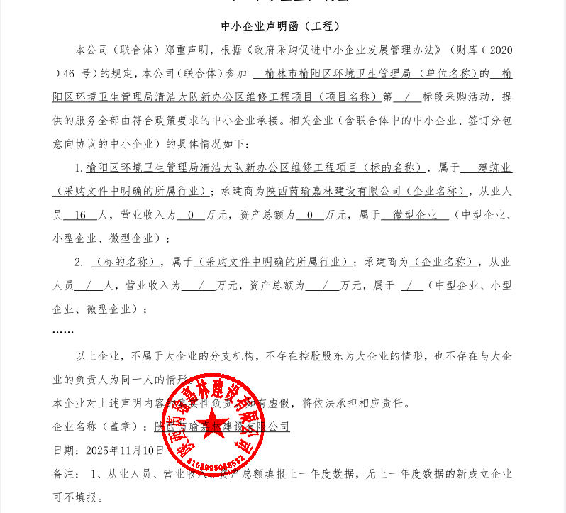 | * | 榆阳区环境卫生管理局清洁大队新办公区维修工程项目 | * | 无 |