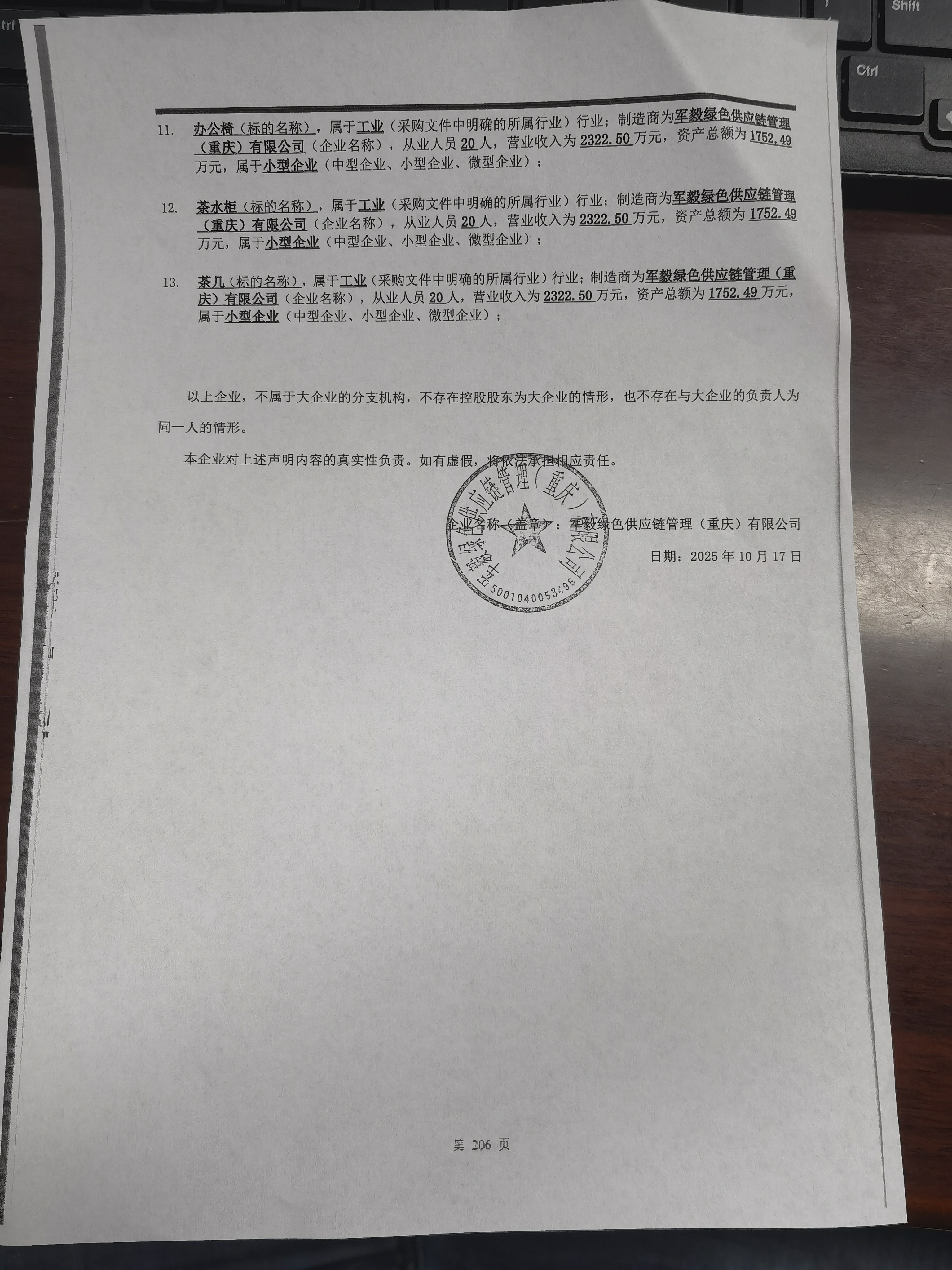 供应商名称:军毅绿色供应链管理(重庆)有限公司