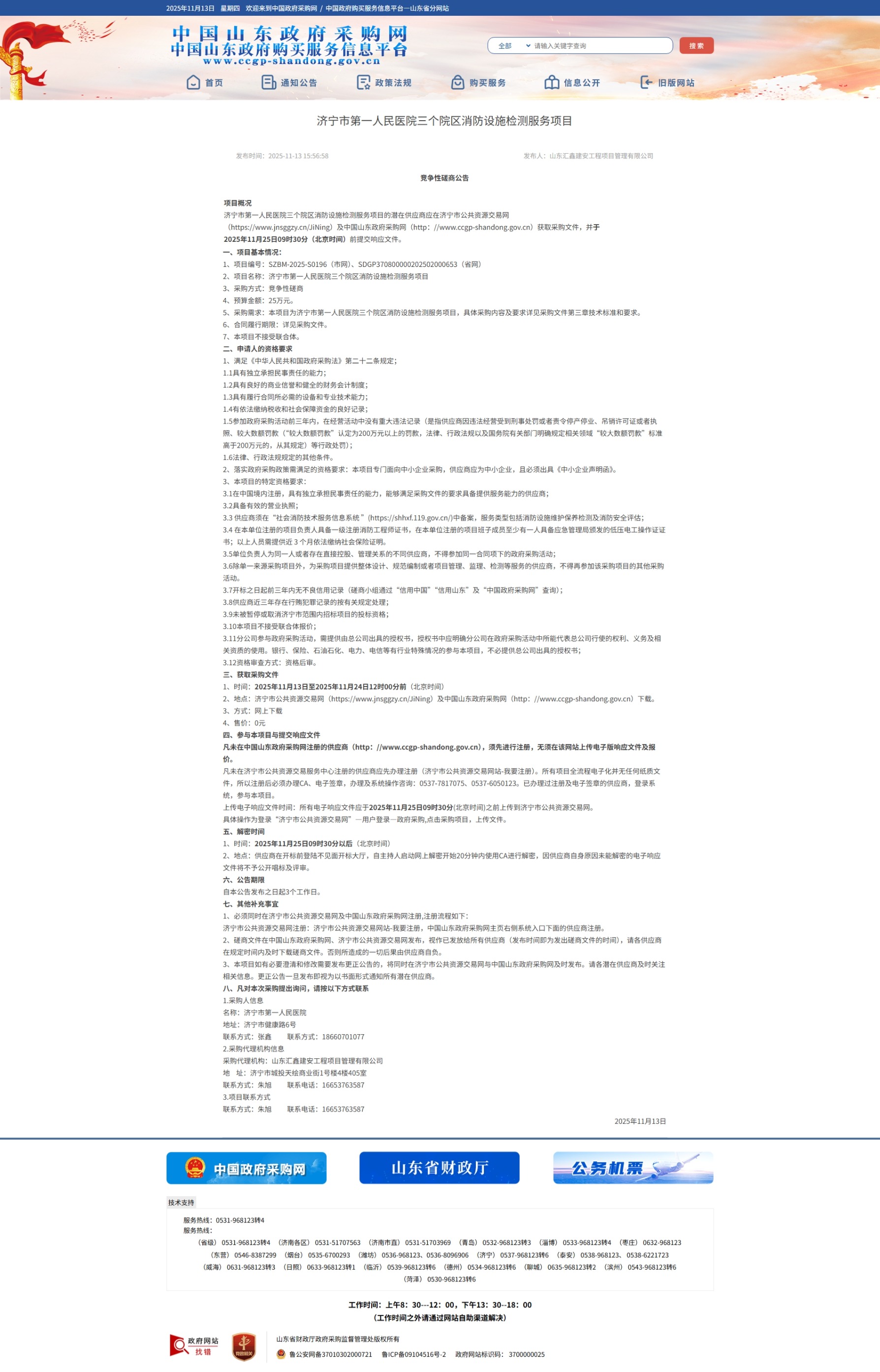济宁市第一人民医院三个院区消防设施检测服务项目竞争性磋商公告