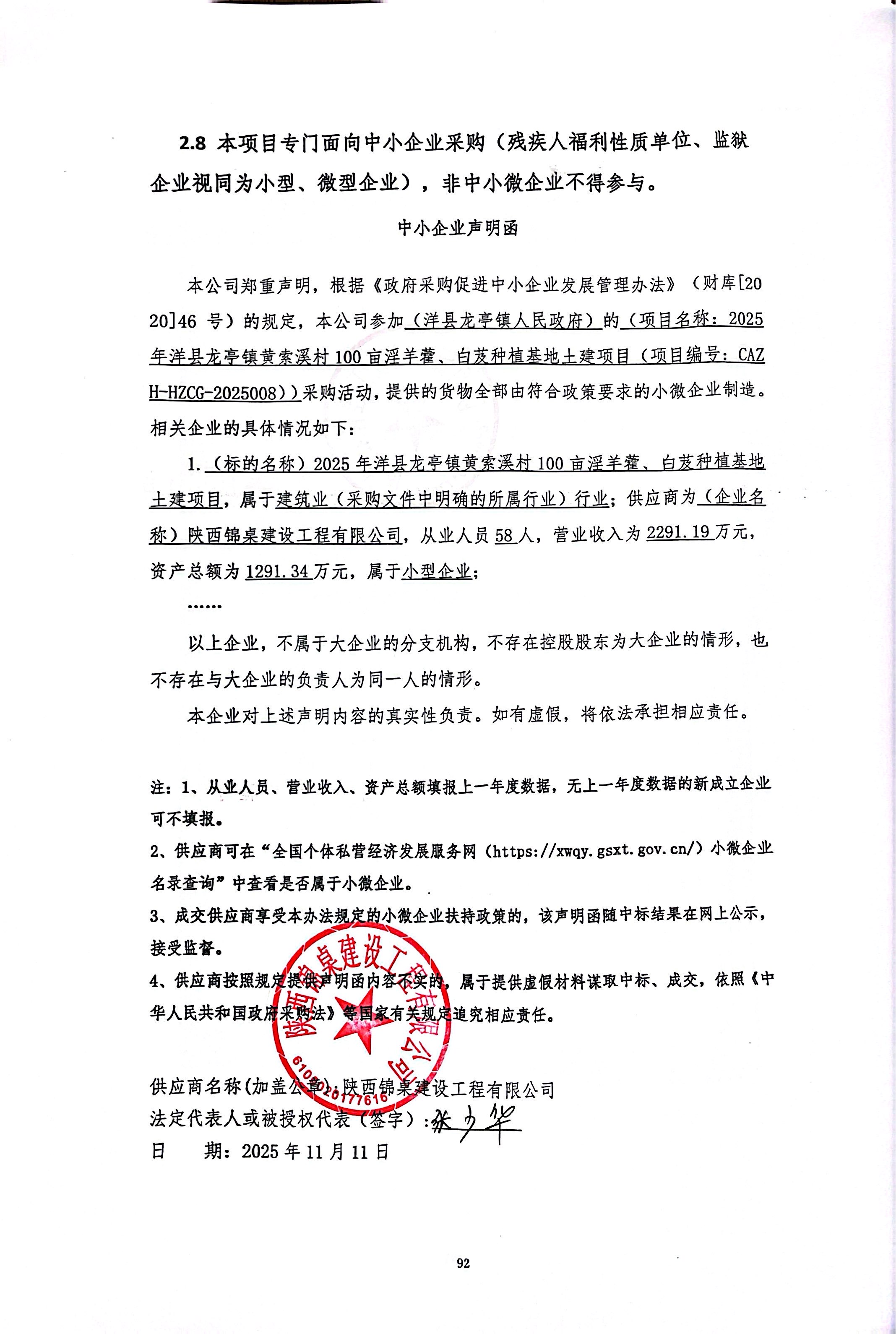 洋县龙亭镇人民政府2025年洋县龙亭镇黄索溪村100亩淫羊藿、白芨种植基地土建项目中标(成交)结果公告