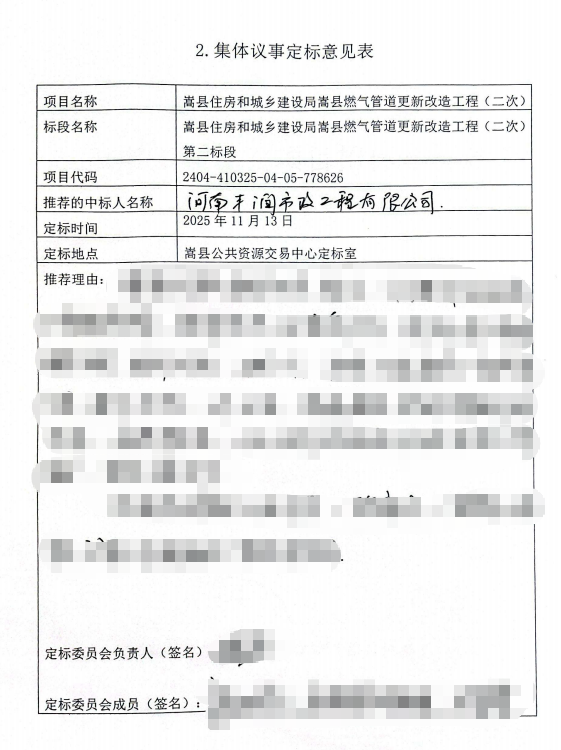嵩县住房和城乡建设局嵩县燃气管道更新改造工程项目*中标公告