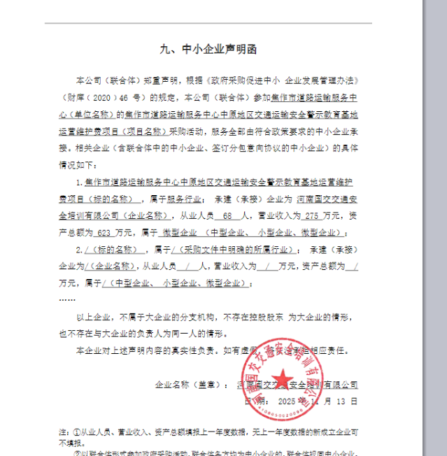 | *、采购项目名称:焦作市道路运输服务中心中原地区交通运输安全警示教育基地运营维护费项目 | |||||||||||||||||||||||||||||||