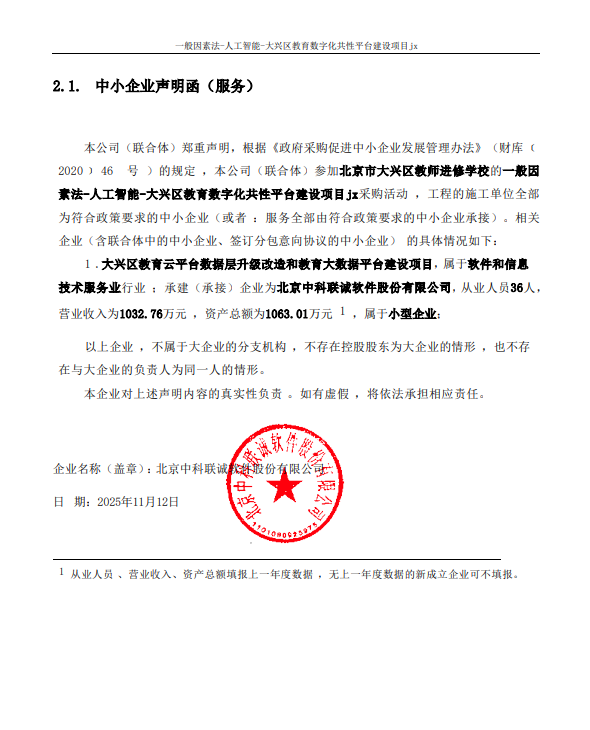 二、项目名称:一般因素法*人工智能*大兴区教育数字化共性平台建设项目**