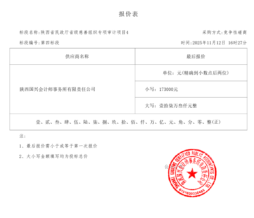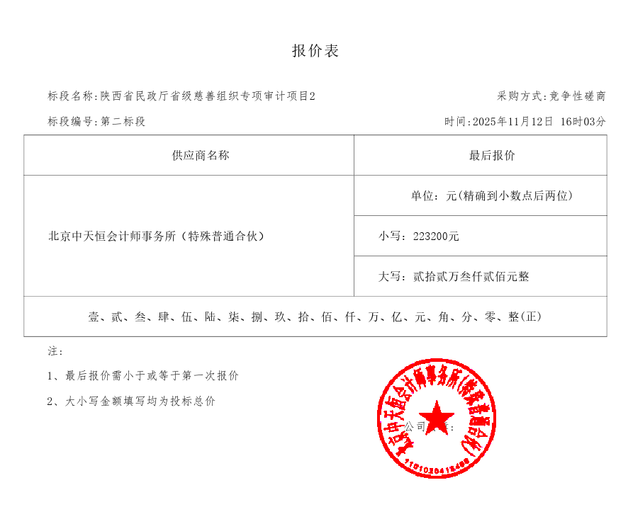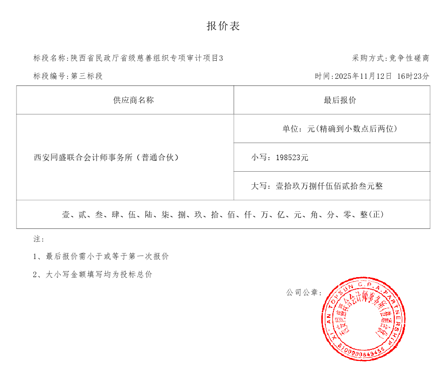 陕西省民政厅机关省级慈善组织专项审计项目中标(成交)结果公告