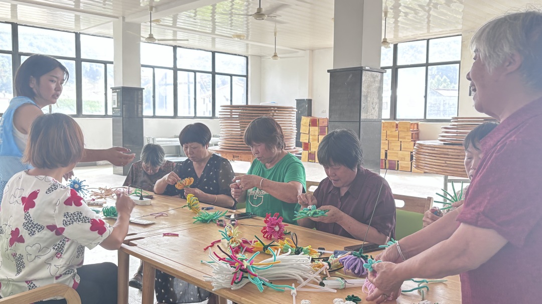 围绕 “九九重阳” 敬老主题,工作人员在石磁村、王渡村、横板桥村、会墅岭村开展 “巧手制菊” 手工 *** 活动。
