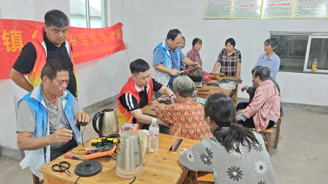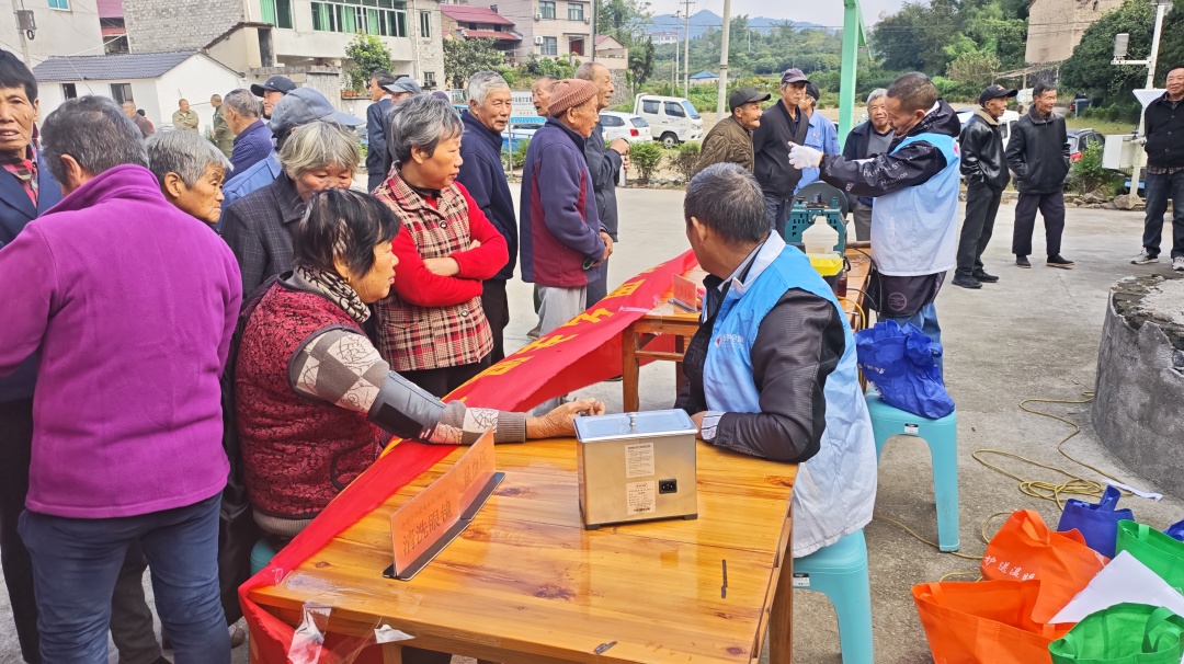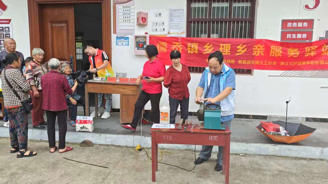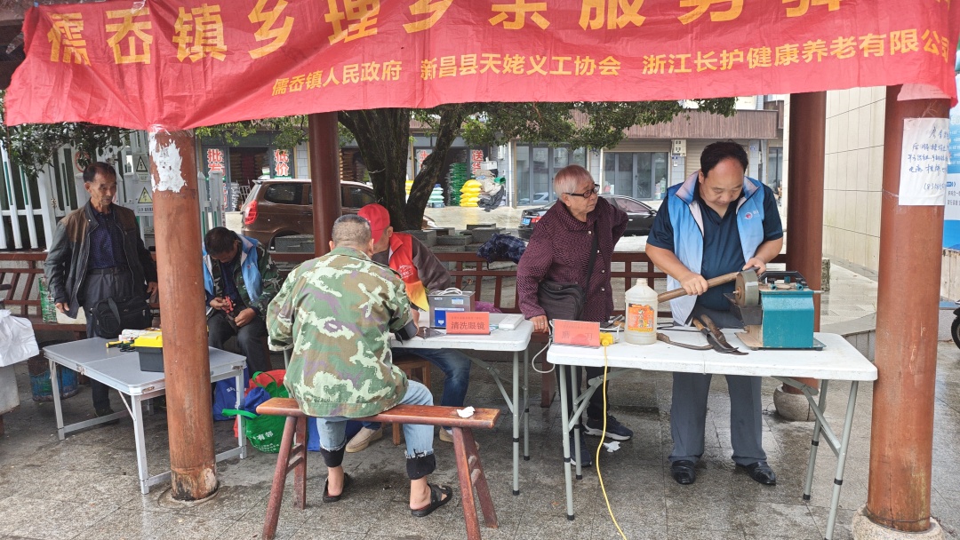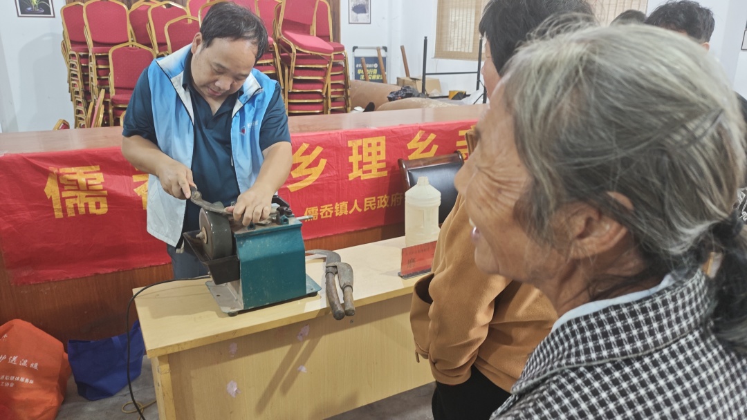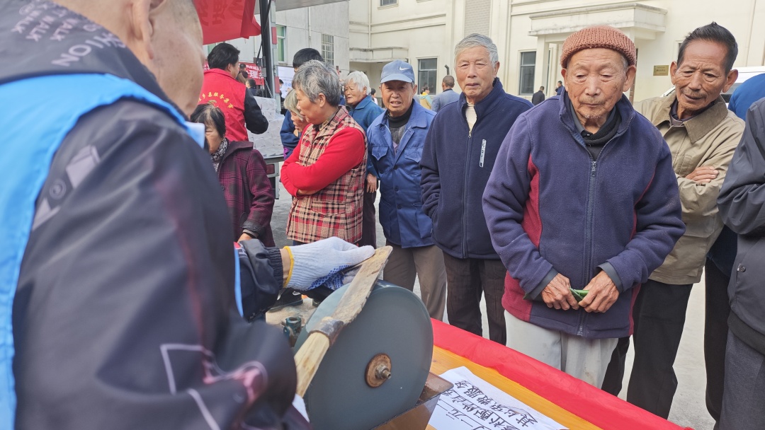 在各村的服务点位,志愿者们忙得热火朝天。有的蹲在地上帮村民磨刀,砂轮转个不停,不一会儿,钝刀就变得锋利无比;有的拿着血压仪给老人量血压, 还有的帮老人修剪指甲,动作轻柔得像对待易碎的珍宝,生怕弄疼老人。