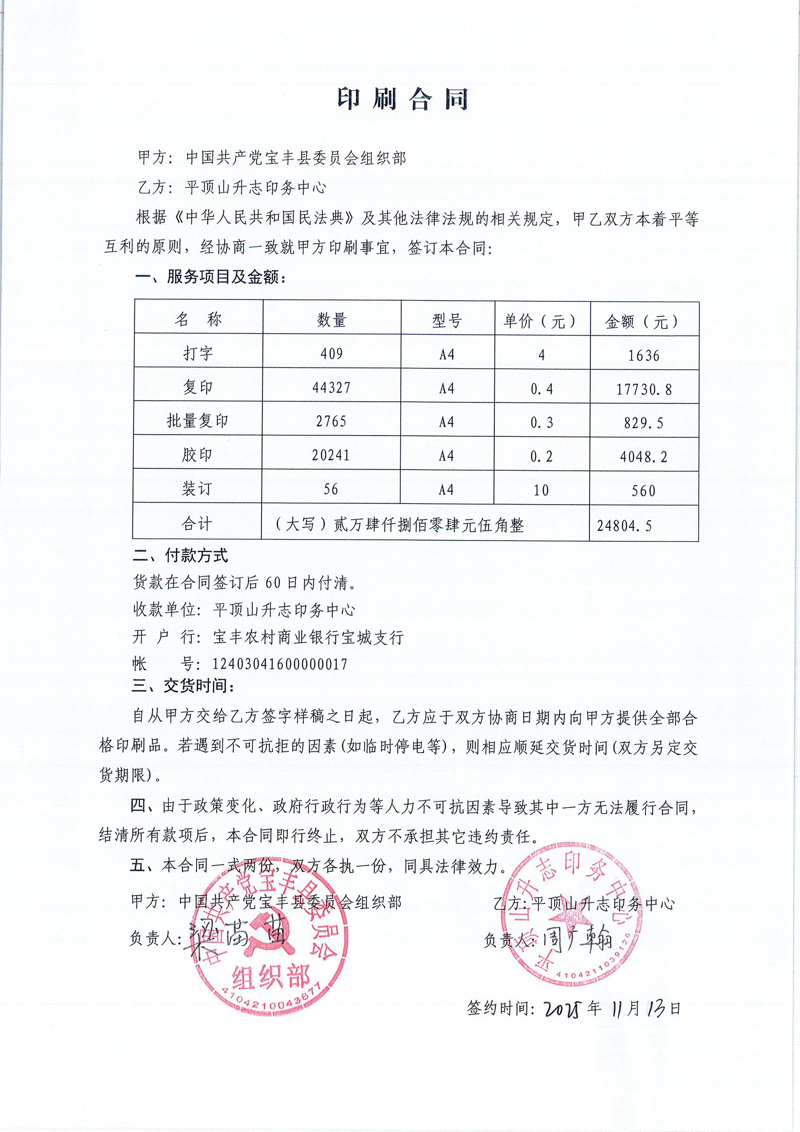 | 二、合同名称:组织部文印费 | ||||||||||||