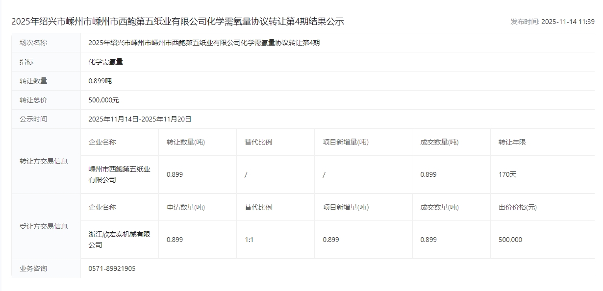 有限公司化学需氧量协议转让第4期结果公示成交公示