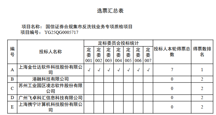 国信证券合规集市反洗钱业务专项质检项目定标结果公示
