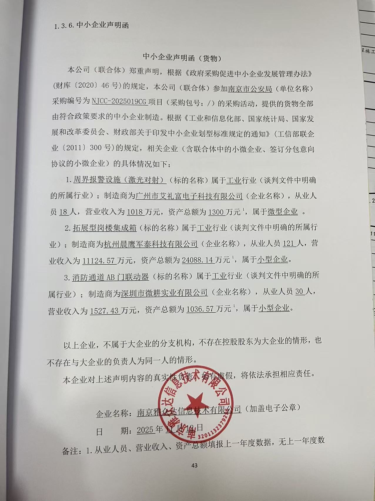 核心产品名称:周界报警设施(激光对射) 品牌:维安达斯 规格型号:********** 数量:* 单价:*****元 |