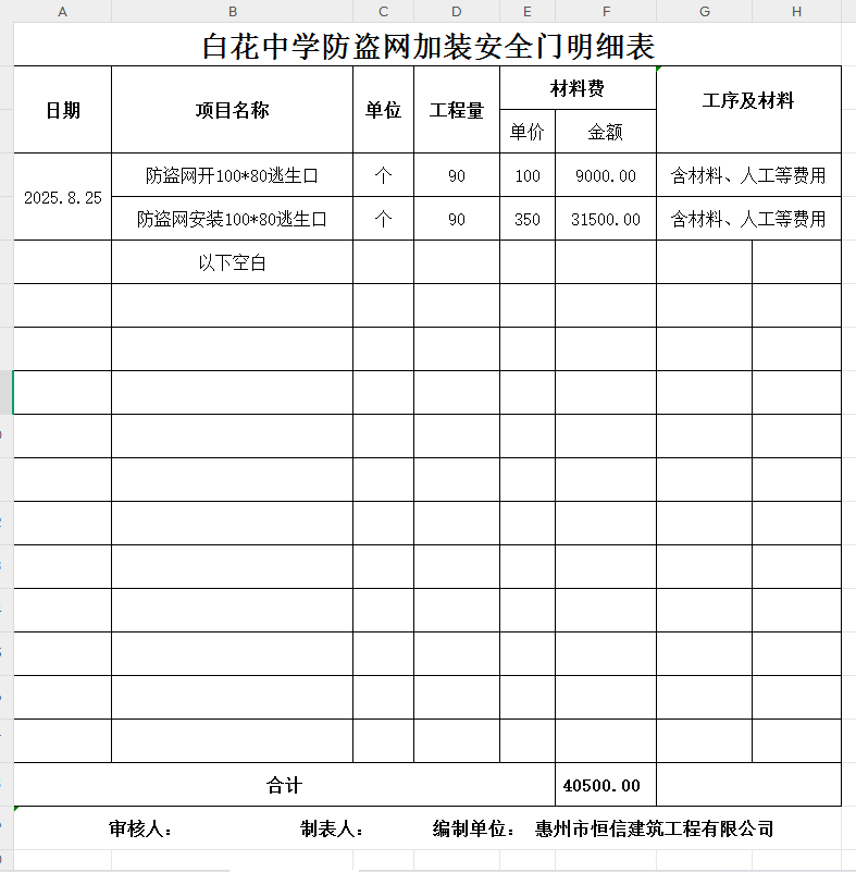 白花中学防盗网加装安全门采购预算编制服务