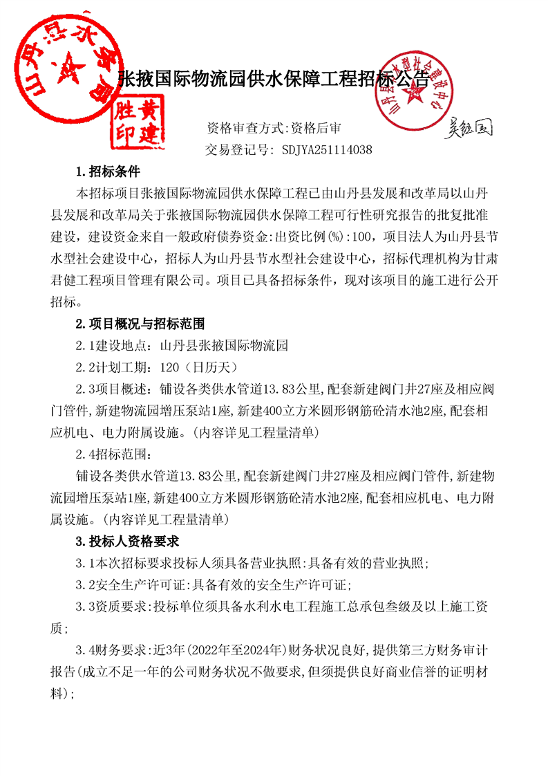 国际物流园供水保障工程招标/资审公告