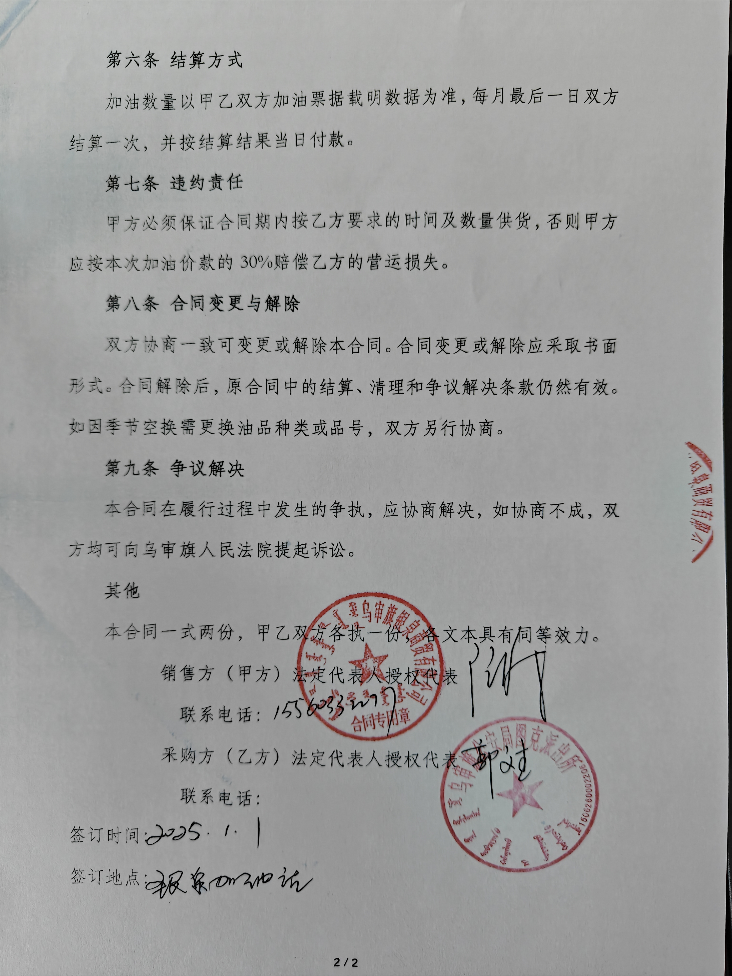 乌审旗公安局图克所9-10月燃油项目政府采购合同公告
