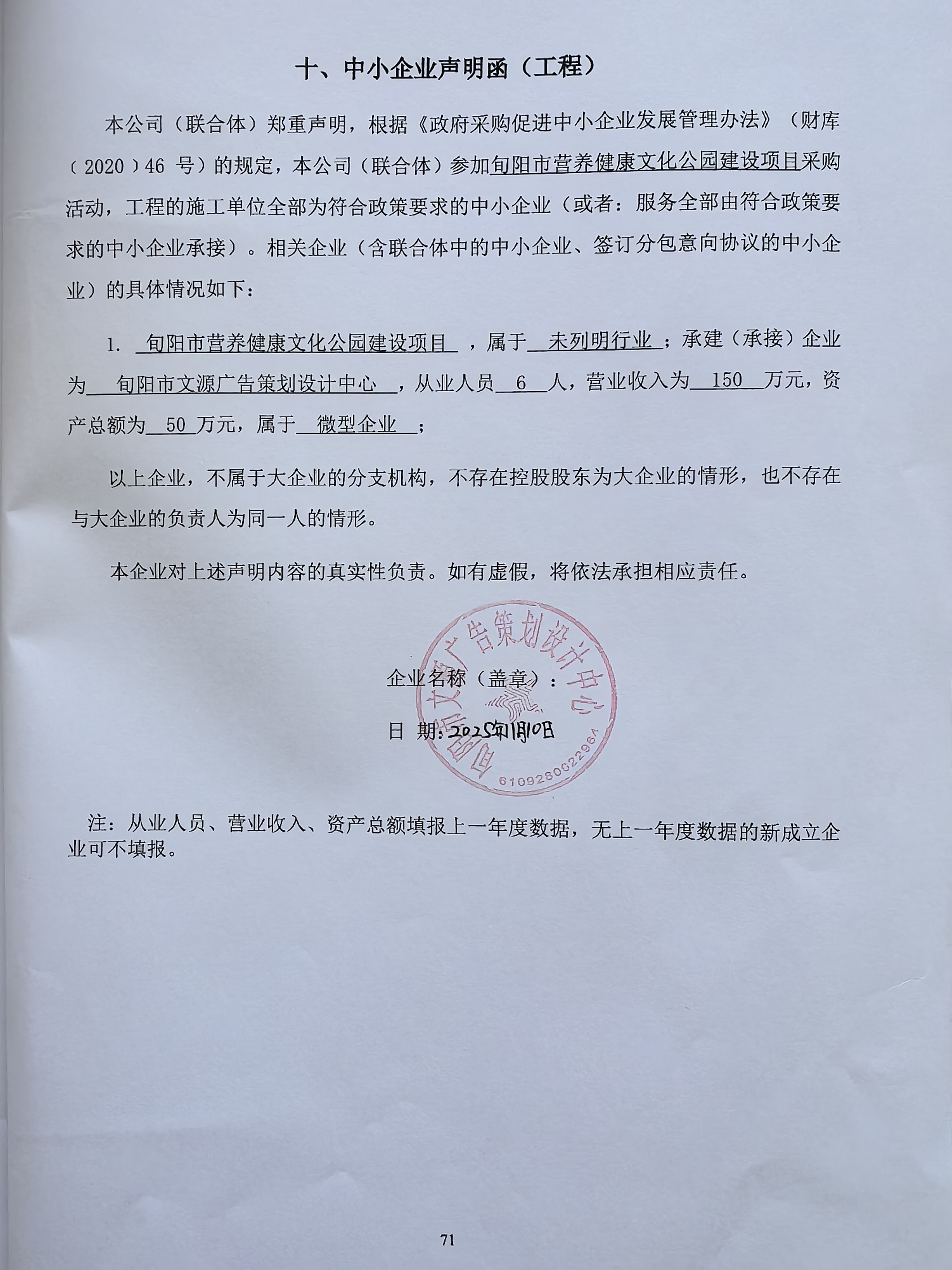 旬阳市营养健康文化公园建设项目中标(成交)结果公告