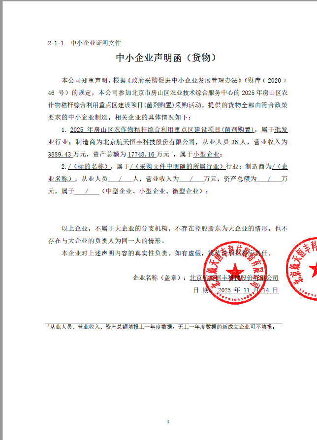 | 北京航天恒丰科技股份有限公司 | ****年房山区农作物秸秆综合利用重点区建设项目(菌剂购置) | / | * | ***.***万元 | ***.***万元 | 详见采购需求 |