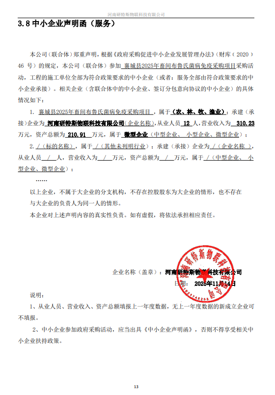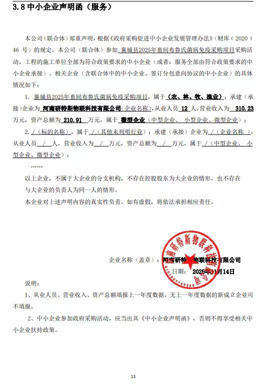 襄财竞谈-2025-6襄城县农业农村局襄城县2025年畜间布鲁氏菌病免疫采购项目-成交公告