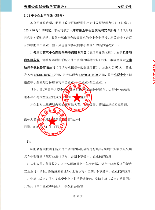 天津市第五中心医院采购安保服务项目(项目编号:TJBH-2025-D...