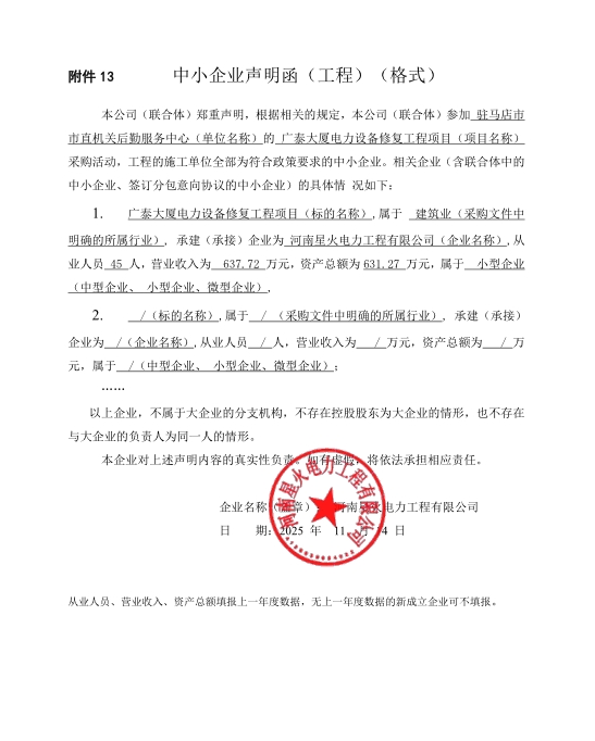 | 经采购人确认:河南星火电力工程有限公司为成交供应商,成交金额为*******.**元。 | |||||||||||||||||||||||||||||||