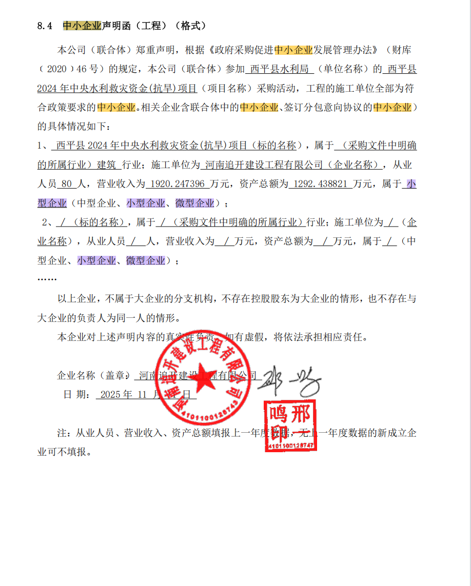 西平县水利局西平县2024年中央水利救灾资金(抗旱)项目-成交公告