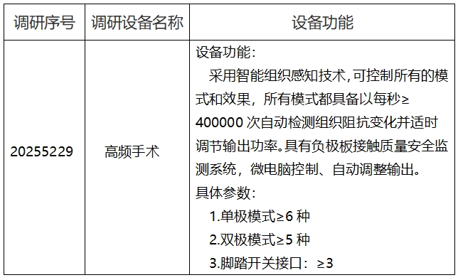 中日友好医院对高频手术设备市场调研公告